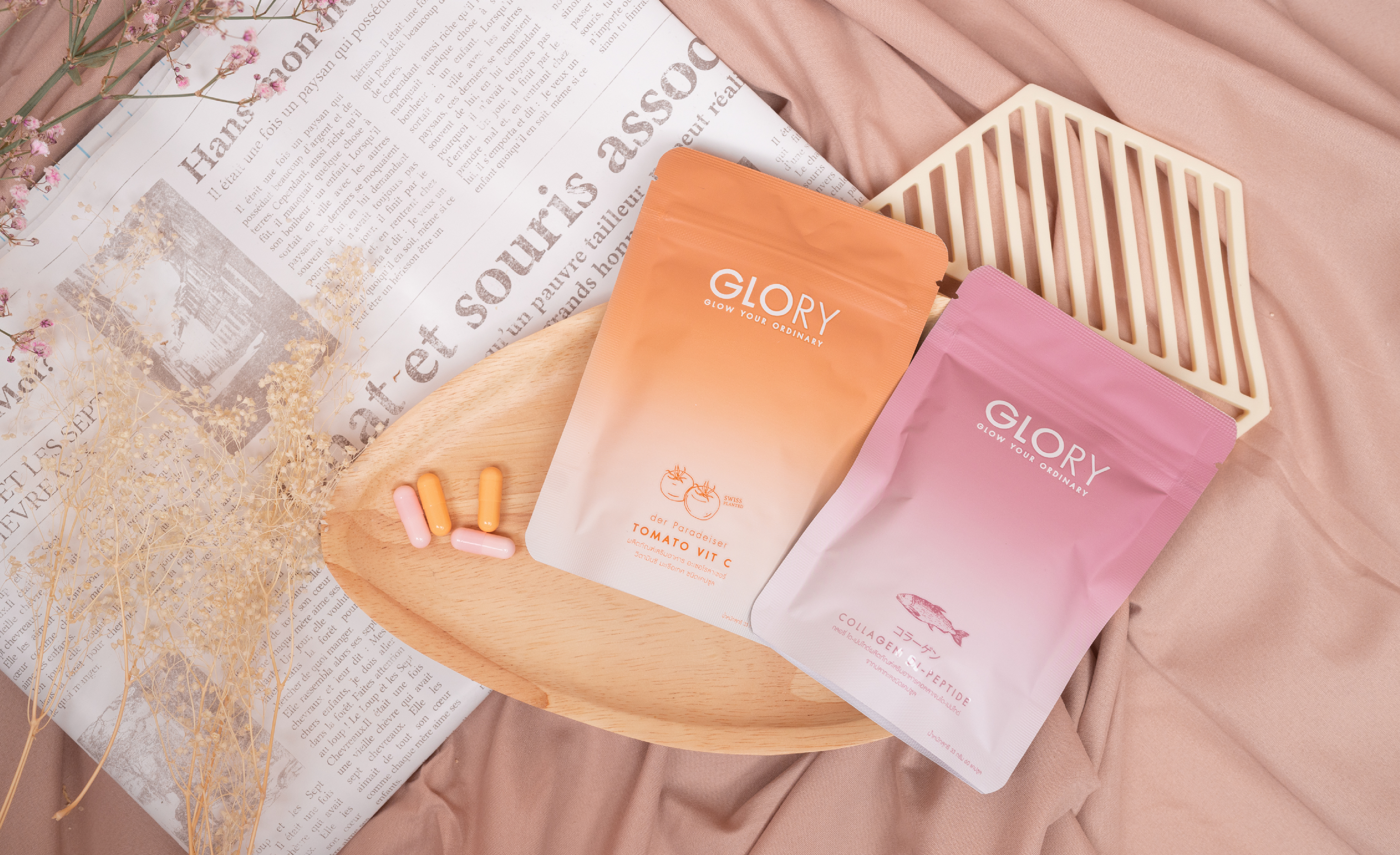 คอลลาเจนกลิ่น Fruity หอมอร่อย ทานง่ายไม่คาว และอัดแน่นไปด้วยส่วนผสมของคอลลาเจน มีเปปไทด์จากปลาทะเลน้ำลึก และถั่วเหลือง ช่วยให้ผิวยืดหยุ่น ชุ่มชื้น ทั้งยังมีสารสกัดจากดอกเก๊กฮวยขาว ช่วยลดเลือนจุดด่างดำ ฝ้า กระ เป็นต้น