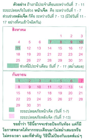 วิธีนับ "หน้าเจ็ด" ให้นับล่วงหน้า 7 วัน ก่อนวันที่คาดว่าประจำเดือนจะมา และ "หลังเจ็ด" ให้นับตั้งแต่วันแรกที่ประจำเดือนมาเป็นวันที่หนึ่งและนับต่อไปอีก 6 วัน (จะรวมเป็น 7 วันพอดี)