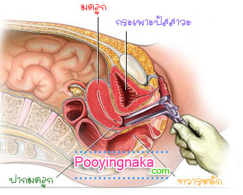 **จากนั้นแพทย์จะทำแป๊ปสเมียร์ (Pap smear) โดยการใช้ไม้ยาวๆมีปลายเหมือนไม้ไอศกรีม ป้ายบริเวณปากมดลูกเบาๆเพื่อนำเซลล์ไปตรวจ การขูดเซลล์ที่ปากมดลูกไปตรวจนี้คือการตรวจหาเซลล์มะเร็ง ถ้าเรามีเพศสัมพันธ์แล้ว แพทย์อาจนำตกขาวจากปากช่องคลอดไปตรวจหาโรคติดต่อทางเพศสัมพันธ์ด้วย การป้ายตกขาวไปตรวจนี้ไม่เจ็บ