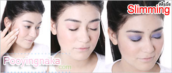 Step 1 : ลงคอนซีลเลอร์ลบรอยคล้ำใต้ตาตามด้วยรองพื้นและแป้งฝุ่นให้ทั่วใบหน้า จากนั้นลงครีมบลัชเฉดสีพีชบริเวณข้างแก้มแล้วใช้นิ้วมือไล้ให้จางเข้ามาด้านหน้าแก้ม หลังจากนั้นจึงลงครีมบลัชเฉดสีชมพูบริเวณด้านหน้าแก้มแล้วเกลี่ยออกด้านข้างให้กลมกลืน