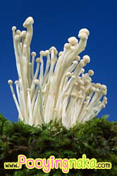 เห็ดเข็มทอง เป็นเห็ดสีขาวหัวเล็กๆ ขึ้นติดกันเป็นแพ รสชาติเหนียวนุ่ม นำมารับประทานแบบสดๆ ใส่กับสลัดผักก็ได้ ถ้าชอบสุกก็นำไปย่าง ผัดหรือลวกแบบสุกี้