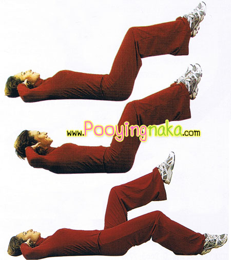 1. นอนหงายงอเข่าให้ปลายเท้าลอยจากพื้นเกร็งหน้าท้องเอาไว้
