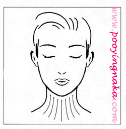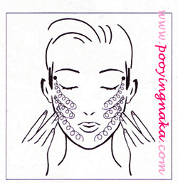 นวดขึ้นในลักษณะเป็นขดลวด ออกไปทางด้านข้างของใบหน้า