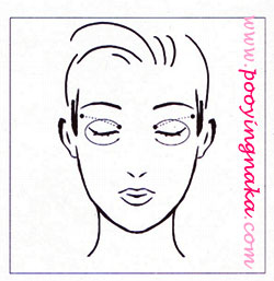 กดเบาๆ บริเวณหัวตา ค่อยๆเลื่อนนิ้วไปตามเปลือกตาบนและขอบตาล่าง แล้วกดเบาๆที่ขมับทั้ง 2 ข้าง