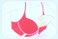 | 1. สอดแขนเข้าไปในสายบ่า มือทั้งสองจับที่ขอบเต้าด้านล่างของบรา |