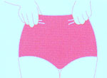 | 1. ขยุ้มสเตย์จากขอบเอวจนถึงขอบลา สอดขาทีละข้าง | 2. ถึงให้ชิดเป้าแล้วค่อยๆคลี่ให้ถึงเอว | 3. ช้อนเนื้อก้นให้เข้าที่ | 4. จัดขอบเอวและขอบขาให้เรียบร้อย |