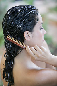 วิธีการ นำส่วนผสมทั้งหมดมาผสมกัน แล้วทาให้ทั่วเส้นผม ใช้มือสางจากโคนถึงปลายผม แล้วขมวดเป็นมวยเอาไว้ 10 นาที ค่อยล้างออก จะช่วยถนอมเส้นผม ยิ่งใครไปว่ายน้ำมา สูตรนี้จะช่วยล้างคลอรีนที่ติดผมได้ด้วยค่ะ