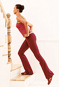 ยีนบนบันไดขั้นต่ำสุด หรือบนลังที่มั่นคง ยืดขาข้างหนึ่งไปด้านหลังใช้ปลายนิ้วเท้าแตะพื้น 5 ครั้ง แล้วทำสลับข้าง