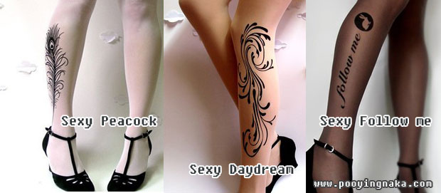 เราเคยเสนอ skin art by Chanel ไปแล้ว แต่คราวนี้แตกต่างตรงที่มีลวดลายอยู่บนถุงน่อง ไม่ใช่บนผิวหนัง ซึ่งสองดีไซเนอร์ซึ่งเป็นศิลปินและนักออกแบบในหลายๆแขนง ได้ลองออกแบบถุงน่องลายสักที่เหมาะกับผู้หญิงดูบ้าง ลวดลายต่างๆทำให้ผู้หญิงเราดูมีเรียวขาเซ็กซี่ขึ้นและน่ามอง โดยเฉพาะใส่เป็นแฟชั่น ราคาอยู่ระหว่าง 18 - 23 เหรียญ ใครอยากลองหามาใส่คงต้องสั่งซื้อทางเนตดูนะคะ ลองมาดูว่ามีลายอะไรกันบ้าง