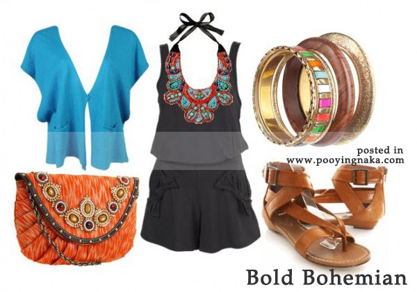 ลุคนี้จะใช้สีเรียบๆผสมผสานกับความเป็นโบโฮ สร้อยคอลูกปัดหลากสีเส้นโต ช่วยเพิ่มความโดดเด่นให้กับบริเวณคอเสื้อ ในขณะที่สีสันและเครื่องประดับอื่นๆ ช่วยให้ลุคนี้ดูไม่น่า