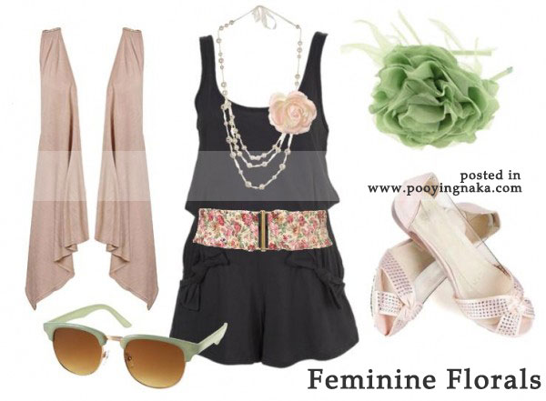สีพาสเทลอ่อนๆ และดอกไม้ ทำให้ลุคนี้ดูเป็นหญิงสาวแสนหวาน ทุกๆอย่างของลุคนี้ดูน่ารักไปหมด โดยเฉพาะรองเท้าคู่สวย