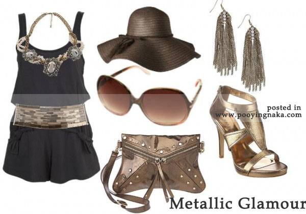 ลุคนี้ดูแจ่มจรัสดั่งดวงดาว ทั้งจากหมวกใบใหญ่ และแว่นกันแดด ต่างหู กระเป๋า และรองเท้า ล้วนเป็นสีโทนเงินเมทัลลิค หากคุณแต่งลุคนี้รับรองได้ว่า คุณจะดูโดดเด่นกว่า