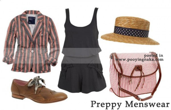 สาวๆที่อยากได้ลุคสบายๆ ดูไม่เป็นผู้หญิงจ๋าจนเกินไป แนะนำเลยว่าลุคนี้จะเหมาะกับคุณอย่างที่สุด เลือกหมวกสักใบ กระเป๋าสะพายข้างลวดลายเรียบหรือลายขวาง ส่วนเสื้อคลุม อาจจะเป็นเสื้อสูทสีสันสักเล็กน้อยตัวโคร่งๆ และรองเท้าหนังแบบผู้ชาย ลุคนี้เป็นลุคของผู้ชายก็จริงแต่มีกลิ่นอายของความเป็นผู้หญิงอยู่บ้าง