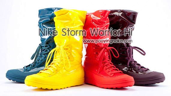 เป็นที่รู้กันว่า เมืองไทยเรา แม้ฝนจะตกขนาดไหน รองเท้าบู้ทส์ก็ยังไม่เป็นที่นิยม คนส่วนใหญ่อาจจะมองว่ารองเท้าแบบนี้ไว้ใส่ทำงานที่เปียกแฉะหรือทำงานอื่นๆมากกว่า ตอนนี้ไนกี้ได้ออกแบบรองเท้าบู้ทส์สำหรับผู้หญิง และดีไซน์สวยทีเดียว เหมาะกับฤดูฝนมากๆ และยังเป็นรองเท้าแฟชั่นได้ด้วย รองเท้านี้คอลเลคชั่นนี้มีชื่อว่า Nike Storm Warrior Hi ซึ่งตัวรองเท้าเป็นหนังไวนิล กันฝนได้แน่นอน ส่วนดีไซน์จะเน้นที่สีสดใส เหมาะกับผู้หญิง ลองมาดูรูปกันค่ะว่า จะถูกใจสาวๆกันหรือเปล่า ไม่แน่ใจว่าจะมีวางขายในเมืองไทยหรือยัง แต่ที่ญี่ปุ่นวางขายแล้วที่ฮาราจูกุค่ะ