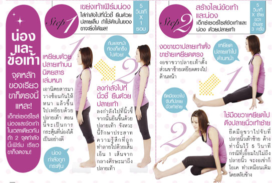 คำแนะนำ : ความหย่อนคล้อยของขาอ่อนและน่อง, และจากข้อเท้าถึงสะโพก ขอแนะนำให้เอ็กซ์เซอร์ไซส์โดยด่วน! ขาจะสวยก็ด้วยเชพสวยๆ
