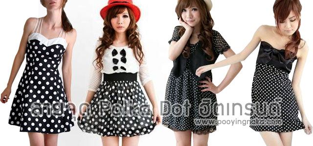 ชุดลายจุดที่ดูดีและเด่นที่สุดคงหนีไม่พ้น ขาว-ดำ และหากเป็นชุดเดรสพลีทด้วยแล้วจะเข้ากันได้ดีมากๆ เพราะจะช่วยพรางช่วงเอวและสะโพกได้เป็นอย่างดี และสีก็เป็นสีที่ทำให้เราดูสง่าอีกด้วย