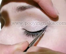 ทิปส์ : เคล็ดลับสำหรับการกรีดอายไลเนอร์ประเภทนี้ให้ง่ายขึ้น ให้เอาศอกวางบนโต๊ะ ก้มหน้าลง แล้วเริ่มกรีดอายไลเนอร์ เพราะการวางศอกบนโต๊ะจะทำให้เวลาวาดอายไลเนอร์มีน้ำหนักในการลงเส้นสม่ำเสมอยิ่งขึ้น ผลที่ได้คือเส้นเรียบตรงสม่ำเสมอ