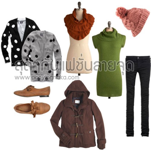 เอาล่ะ สำหรับวันไปเรียนเราต้องมีอะไรบ้าง เพื่อความอินเทรนด์ หนาวอย่างนี้ชุดคงต้องสวมหลายชั้น อินเทรนด์ไปกับแฟชั่นด้วยและที่สำคัญควรจะสวมใส่ได้สบายๆ ลองไปเดินช้อปกันได้ ไม่ว่าจะเป็นร้านหรูหรือตลาดนัด มองหาเสื้อคาร์ดิแกนแบบลายจุด ให้เลือกสีกลางๆที่จะมิกซ์กับสีอื่นๆได้ง่ายอย่างสีดำหรือสีเทา ซึ่งจะนำไปมิกซ์กับสีฟ้า เขียว แดงหรือสีที่สาวๆต้องการ ถ้าอากาศเย็นๆ ลองเลือกเสื้อตัวในเป็นเสื้อถัก และเลกกิ้งยีนส์ หรือที่เราเรียกกันว่า Jegging นั่นล่ะ สำหรับรองเท้าเลือกเป็นรองเท้าออกฟอร์ดสีน้ำตาล และพันคอด้วยผ้าพันคอถักสีส้ม และหมวกถักน่ารักๆสักใบ