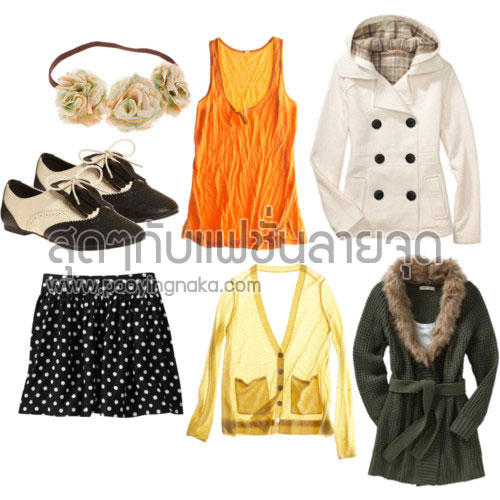 ให้เลือกเป็นกระโปรงลายจุด ความสั้นก็แล้วแต่ชอบ เสื้อตัวบนสีส้มตัดกับกระโปรงสีดำได้ดี ใส่แล้วกำลังสวย และถ้าอากาศเย็นๆ ก็ให้สวมคาร์ดิแกนสีส้มอ่อนๆทับ ชิคนะสาวๆ แต่ถ้าอากาศเข้าขั้นหนาวล่ะก็ คงเป็นคาร์ดิแกนแขนยาวขนสัตว์ รับรองว่าอุ่นกายอุ่นใจ รองเท้าให้เลือกสีทูโทน อย่างดำกับขาว จะเข้ากับชุด และไม่โดดเกินไป และสำหรับสาวๆที่อยากเพิ่มความหวานให้กับเดตครั้งนี้ ให้หาที่คาดผมประดับดอกไม้ เท่านี้ล่ะ สุดๆแล้ว