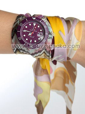 สะท้อนบุคลิกที่โดดเด่น ผ่านนาฬิกาข้อมือแฟชั่นสุดหรูหรากับ ทอยวอทช์ มิสโซนี่ คอลเลคชั่น (ToyWatch Missoni Collection) รุ่นลิมิเตด เอดชั่น ที่ตัวเรือนทำจากพลาสเทอรามิค ขับเคลื่อนด้วยระบบควอทช์ หน้าปัดธรรมดาขนาด 38 มิลลิเมตร แต่โดดเด่นด้วยสายโอบรัดข้อมือที่เสมือนผ้าพันคอ พร้อมลวดลายเอกลักษณ์จากมิสโซนี่ ผู้นำด้านแฟชั่นผ้าพันคอ ที่มีให้เลือกถึง 6 โทนสี กับ ม่วง-น้ำเงิน, ฟ้า-ส้ม, แดง-ดำ, ชมพู-ส้ม, เหลือง-ม่วง และ เขียว-ฟ้า พร้อมปลายผ้าจะเป็นหนังติดกระดุมเหล็ก ให้การโอบรัดกระชับแน่นมากยิ่งขึ้น ในราคา 16,900 บาท