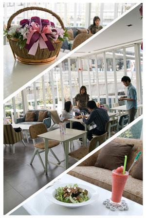 ปกติขึ้นรถไฟฟ้าเป็นประจำอยู่แล้วค่ะ ชอบไปเดินแล่นแถวสยามพาราก้อนไรงี้ ก็แบบว่าวัยรุ่นนี่คะทำไงได้ ต้องทันสมัยกันนิดนึงเป็นธรรมดา วันนั้นกำลังลงจากสถานีรถไฟฟ้าตรงสยาม มองไปเห็นร้านอาหารร้านนึงอยู่ตรงชั้นบนของ Digital Gateway เรียบๆ เคียงๆ ดูแล้วพบว่าร้านเค้าน่ารักดีนะคะ พอดีได้สปอนต์เซอร์ใจดีอย่าง “น้ำตาลมิตรผล” ให้หนูแจ่มได้ลองของ ก็เลยถือโอกาสลุยให้รู้กันไปเลยค่ะ