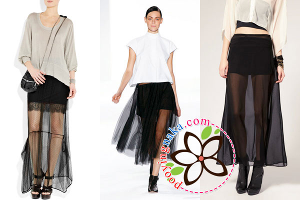 อีกเทรนด์ที่กำลังมาแรรงก็คือ แม๊กซี่แบบโปร่ง โดยอาจจะมีกระโปรงสั้นอยู่ด้านใน
