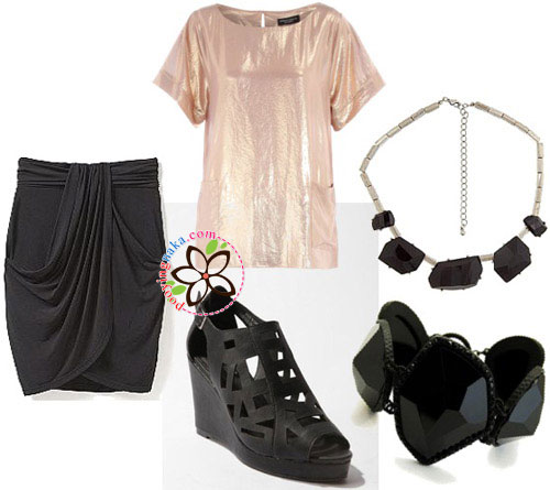 ลุคสุดท้ายนี้เหมาะกับการท่องราตรีกับเพื่อนสาว ไม่ว่าจะเป็นภัตตาคาร บาร์หรือไนท์คลับเก๋ๆ หาเสื้อแวววาวอย่างนี้สักตัวก็ไม่เชยตกยุคแล้วล่ะค่ะ รองเท้าที่จะนำมามิกซ์ให้เป็นรองเท้าส้นเตารีดสีดำที่จะช่วยให้เรียวขาดูเล็ก เครื่องประดับควรเป็นสีดำทั้งหมดเพื่อคุมโทนสีและให้ชุดโดดเด่นที่เสื้อด้วยค่ะ