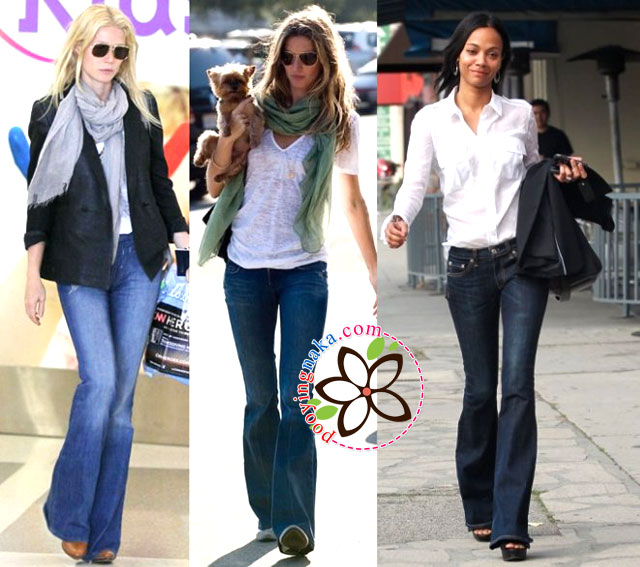 ควรเลือกกางเกงยีนส์เอวสูงเข้าไว้ ควรเลือกยีนส์ที่มีลวดลายเส้นโค้ง สีสว่าง และไม่ควรมีกระเป๋ากางเกง จะช่วยเน้นสัดส่วนของคุณมากขึ้น ที่สำคัญควรหลีกเลี่ยงการใส่กางเกงยีนส์ทรงตรงแบบผู้ชาย และไม่ควรใส่กางเกงทรงหลวมๆ เด็ดขาด เพราะจะทำให้บั้นท้ายของคุณยิ่งแบนราบลงไปอีก