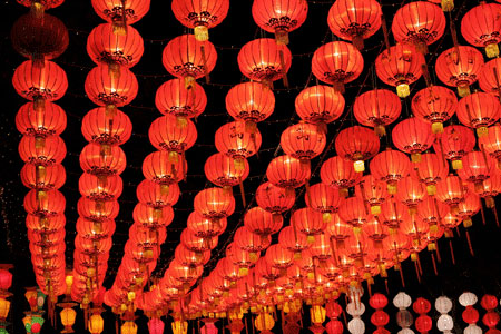 เมื่อถึง วันตรุษจีน ประเพณีตั้งแต่โบราณมาเรียกว่า อังเปา ซึ่งหมายถึง กระเป๋าแดง เป็นการที่คู่แต่งงานให้เงินเด็กๆ และผู้ใหญ่ที่ยังไม่ได้แต่งงานในซองสีแดง หลังจากนั้นทุกคน ในครอบครัว ต่าง ออกมาเพื่อคำอวยพรวันปีใหม่กล่าวสวัสดีปีใหม่ เริ่มจากญาติๆ แล้วต่อด้วยเพื่อนบ้าน โดยส่วนใหญ่คำอวยพรวันปีใหม่จะพูดว่า ซินเจียยู่อี่ ซินนี้ฮวดไช้ ซินเจิ้งหรูอี้ ซินเหนียนฟาไฉ ซึ่งคงคล้ายกับการที่ชาวตะวันตกพูดว่า Let bygones be bygones (อะไรที่ผ่านไปแล้วก็ให้มันผ่านไป) ใน วันตรุษ นี้อารมณ์โมโหโกรธาจะถูกลืมและไม่สนใจ การฉลอง วันตรุษจีน สิ้นสุดลงในงานโคมไฟ ซึ่งฉลองโดยการร้องเพลง เต้นรำ และงานแสดงโคมไฟ ถึงแม้ว่าการฉลอง วันตรุษจีน จะมีแตกต่างกันออกไปแต่สิ่งที่เหมือนกัน คือ การอวยพร ความสงบ และความสุขให้กับคนในครอบครัวและเพื่อนทุกคน