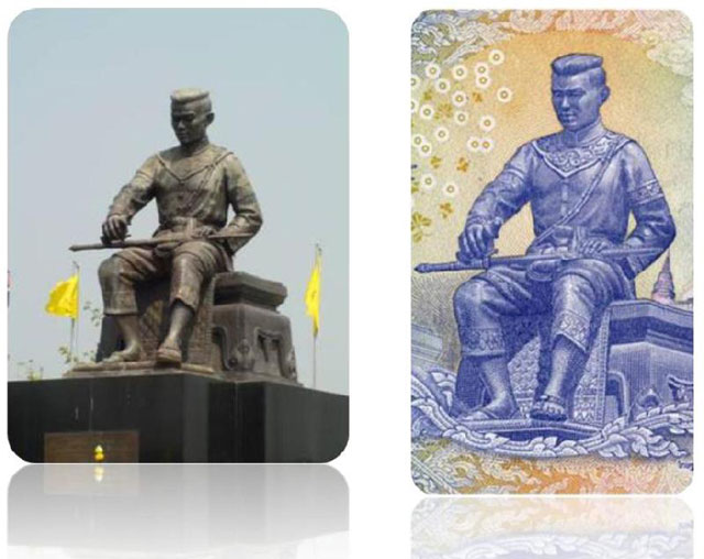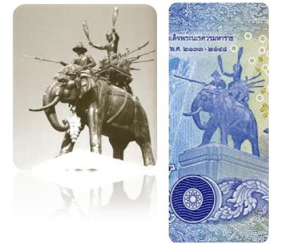 -พระบรมราชานุสาวรีย์สมเด็จพระนเรศวรมหาราชทรงกระทายุทธหัตถีประดิษฐานณ อนุสรณ์ ดอนเจดีย์ จังหวัดสุพรรณบุรี เพื่อแสดงถึงพระวีรกรรมอันกล้าหาญเมื่อครั้งที่ทรงกระทายุทธหัตถีชนะ พระมหาอุปราชาในพุทธศักราช 2135 ซึ่งถือเป็นชัยชนะครั้งสาคัญและยิ่งใหญ่ในประวัติศาสตร์ไทย เนื่องจากมีคติแต่โบราณว่า การรบบนหลังช้างเป็นยอดแห่งความสามารถของนักรบ เพราะเป็นการต่อสู้กันตัวต่อตัว แพ้ชนะกันด้วยความสามารถ พระมหากษัตริย์ที่ทรงกระทายุทธหัตถีจึงถือเป็นพระเกียรติยศสูงสุด ผลจาก พระวีรกรรมในครั้งนั้นทาให้หมู่ข้าศึกนานาประเทศไม่กล้ามารุกรานกรุงศรีอยุธยาอีกเป็นเวลานาน ทาให้บ้านเมืองและพสกนิกรมีความร่มเย็นเป็นสุข