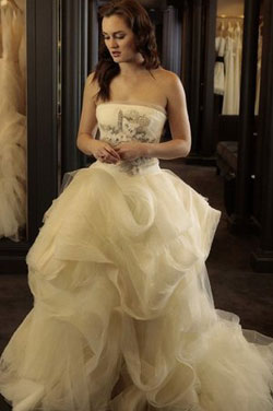 แบลร์ในชุดแต่งงานของเวร่า แวง ดีไซเนอร์ที่สาวๆต่างใฝ่ฝันให้ออกแบบชุดแต่งงานให้ ดูกันใกล้ๆกับดีเทลบนชุดแต่งงาน ลายปัดที่ส่วยงามพร้อมดอกไม้ที่เบ่งบาน ไม่หวานเกินไป