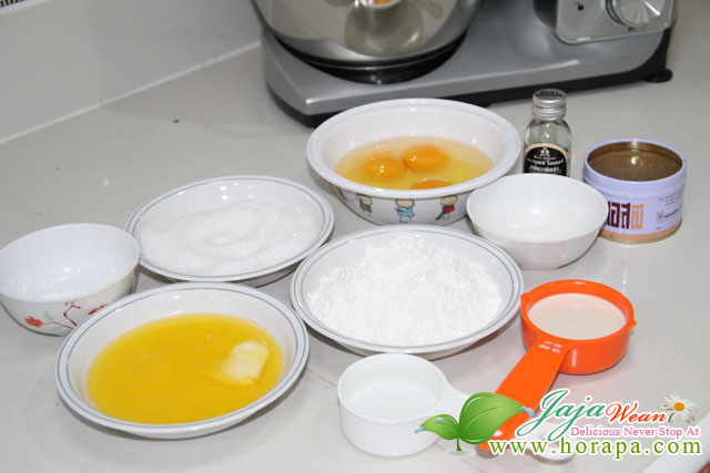 1.ร่อนแป้งและผงฟูพักไว้