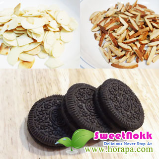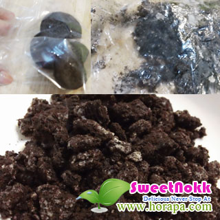 หากต้องการใส่โอรีโอ้ด้วย ให้นำโอรีโอ้ หรือคุกกี้ต่างๆที่ตามชอบ ใส่ในถุง และใช้มือบี้ให้แตก ความละเอียดมากน้อยขึ้นกับความต้องการว่าอยากให้มีส่วนผสมที่ละเอียดหรือเคี้ยวกรุบกรอบ |
