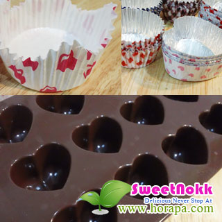 ในส่วนของพิมพ์ชอคโกแลต เลือกได้ตามใจชอบในรูปแบบต่างๆ แนะนำให้หาร้านขายอุปกรณ์เบเกอรี่ หรือในร้านไดโซก็พอมีขายอยู่เหมือนกัน เลือกแบบที่เราชอบหรือจะให้เข้ากับวาเลนไทน์ก็เป็นรูปหัวใจแบบต่างๆหรือสีที่หวานๆ