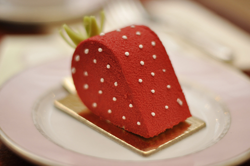อันนี้เก๋ไก๋มาก ทำเป็นรูปสตรอเบอร์รี่คลุกด้วยผงช็อกโกแลต สวยจนไม่กล้าทานทีเดียว