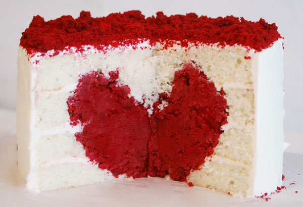 หรือจะเป็นเลเยอร์เค้กที่มีลูกเล่นซ่อนอยู่ข้างในที่ทำจาก red velvet เค้กกำมะหยี่สีแดง