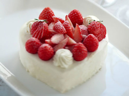 เติมความหวานให้หัวใจกันด้วยภาพขนมเค้กสวยๆ..เริ่มกันที่เค้กรูปหัวใจค่ะ ขาวบริสุทธิ์กับผลไม้สดสีแดง..