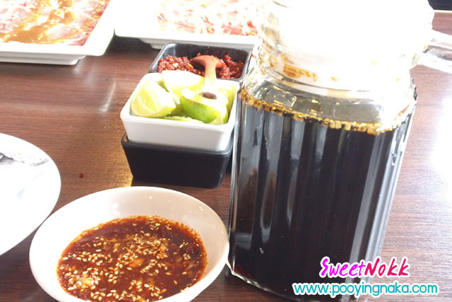 สิ่งพิเศษของร้านนี้คือ น้ำจิ้ม เป็นสูตรเฉพาะของร้านที่จะเติมโตบั้นจังเข้าไปด้วย ช่วยให้น้ำจิ้มรสกลมกล่อมขึ้น พร้อมกับมะนาว พริกสดและกระเทียมสำหรับคนที่ชอบรสจัดจ้าน สามารถปรุงเพิ่มได้ตามใจชอบ