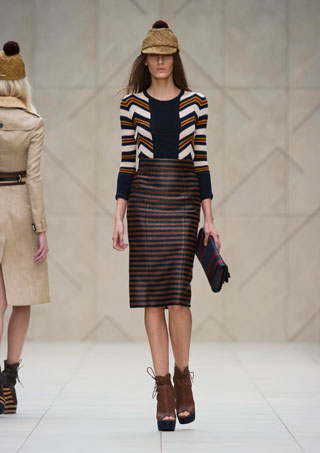 เบอร์เบอรี่ (BURBERRY) คอลเลคชั่น สปริง-ซัมเมอร์ 2012 ได้แสดงถึงความเป็นแบรนด์อังกฤษอย่างแท้จริง ในธีม Handcrafted Heritage สร้างสรรค์เสื้อผ้าที่มีลักษณะโดดเด่นด้วยเท็กซ์เจอร์ชัดเจน ด้วยงานฝีมือ โดยนำ มนต์เสน่ห์ของศิลปะ อาทิ ลูกปัด การถักทอ งานฝีมือชนเผ่าและการพิมพ์ลายหลากแบบ มาเป็นแรงบันดาลใจ ของเทรนด์ใหม่ซีซั่นนี้