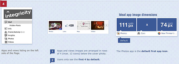 4. แอพต่างๆ เช่นเกม ที่เคยโชว์ลิงค์ไว้ทางซ้าย ก็ย้ายไปอยู่ใต้ Cover photo และมักจะถูกซ่อนไว้ ต้องกดลูกศรเล็กๆขวาสุด ดึงลงมาอีกที เพราะตรงนี้จะแสดงได้แค่ 4 อย่างเท่านั้น ซึ่งมักจะเป็น Photos , Likes , Map , Videos