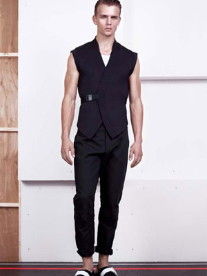 คอลเลคชั่นสำหรับสุภาพบุรุษ ยังคงเน้นการตัดเย็บอย่างประณีตและพิถีพิถันในทุกรายละเอียด ไม่ว่าจะเป็นเสื้อเชิ้ตแบบ Button-down เพิ่มเลเยอร์ชั้นนอกประดับหัวเข็มขัดด้านข้าง เสื้อแจ๊คเก็ตสีขาวคลาสสิกสไตล์สปอร์ต แซมด้วยสีเขียวมะนาวและสีน้ำเงินสด นอกจากนี้ ยังมีเสื้อโปโลทรงอสมมาตรสไตล์เรียบเท่และแจ๊คเก็ตหนัง แบบทนทาน กางเกงยีนส์แบบคลาสสิกคัตติ้ง แต่งสนับเข่าในแบบชุดฟันดาบ ซึ่งลูกเล่นสำหรับคอลเลคชั่นนี้ อยู่ที่การนำหัวเข็มขัดมาเป็นองค์ประกอบหลักในการออกแบบ ไม่ว่าจะเป็นรองเท้า ชุดว่ายน้ำและเสื้อผ้า ซึ่งให้รู้สึกถึงกลิ่นอายความเป็นกีฬาได้เป็นอย่างดี