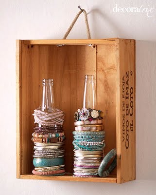 1. เริ่มจากแปลงร่างขวดแก้วและลังไม้ธรรมดา ให้กลายเป็นที่เก็บกำไลข้อมือ สวยงาม ได้ประโยชน์ บ้านไม่รก เริ่ดไหมคะ