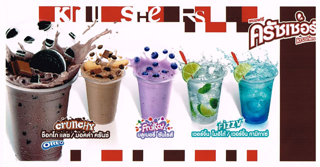 เครื่องดื่มแนวใหม่ที่ว่านี้เป็นเกล็ดนมปั่น 5 รส 5 สไตล์ด้วยกัน ในงานนั้นเริ่มต้นด้วยความสนุกสนานของเกมต่างๆที่ทาง KFC ได้นำมาให้ผู้ร่วมสนุกได้ร่วมลุ้น และจากนั้นจะเป็นการแดนซ์กันกระจายของมาสคอตครัชเช่อร์ ซึ่งมาพาเหรดเปิดตัวเครื่องดื่มแนวใหม่ 3 คาแร็กเตอร์ด้วยกัน นั่นคือ ครัชเช่อร์ ครันชี่ ป๊อป แดนซ์, ครัชเช่อร์ ฟรุตซี่ เชียร์ ลีดเดอร์ และปิดท้ายด้วย ครัชเช่อร์ บีบอยและบีเกิร์ล