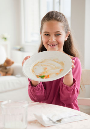 จากผลการวิจัย การเสิร์ฟอาหารและให้เจ้าตัวน้อยรับประทานอาหารที่โต๊ะอาหาร แทนการเสิร์ฟอาหารที่ไหนก็ได้ในบ้าน มีแนวโน้มที่เด็กจะรับประทานอาหารจนเกลี้ยงจาน และเด็กก็จะเรียนรู้ว่า “เมื่ออาหารเกลี้ยงจาน” คือเวลาในการสิ้นสุดการรับประทาน