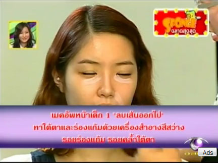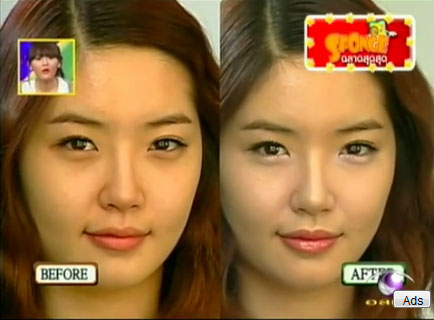 1.ก่อนอื่นปกปิดรอยหมองคล้ำ รอยบุ๋มและร่องริ้วรอยต่างๆ โดยเฉพาะที่ใต้ตาและร่องแก้มด้วยเครื่องสำอางสีสว่าง(หรือคอนซีลเลอร์) แล้วเกลี่ยให้ทั่วค่ะ