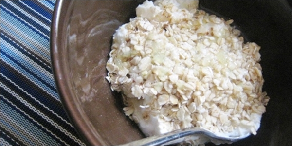 เทน้ำที่แยกตัวออกมา 4 ช้อนโต๊ะ ผสมกับข้าวโอ๊ตที่บดในเครื่องผสมอาหารจนละเอียด 2 ช้อนโต๊ะ