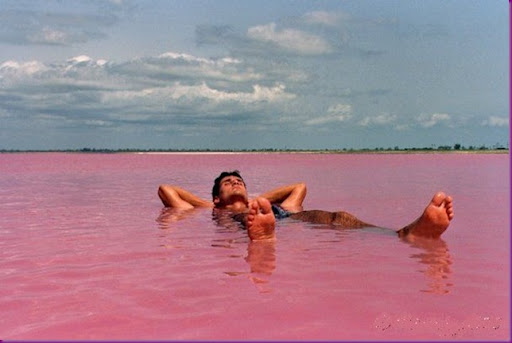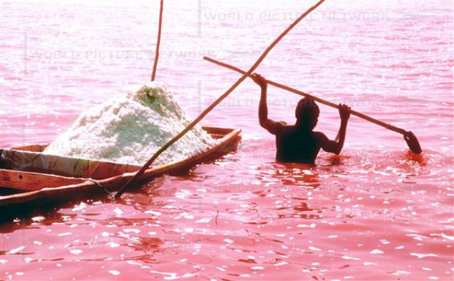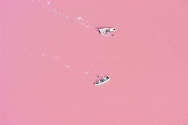 ทะเลสาบที่ว่านี้คือ ทะเลสาป ′Retba′ ในประเทศเซเนกัลตั้งอยู่ทางแอฟริกาตะวันตก โดยนายไมเคิล เดนสัน นักจุลชีววิทยาให้เหตุผลว่า ทะเลสาบแห่งนี้มีสีแดงอ่อนที่เกิดจากปริมาณเกลือในทะเลสาบที่สูงถึง 40 เปอร์เซ็นต์ ซึ่งปริมาณเกลือที่สูงทำให้เกิดการลอยตัวเหมือนการว่ายน้ำในทะเลสาบเดดซี  หากดูจากมุมสูงทะเลสาบจะดูเป็นสีชมพูลักษณะคล้ายนมสตอเบอรี่หรือนมเย็น