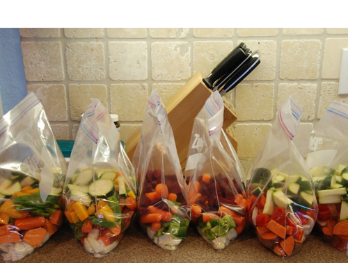 23.สำหรับแม่บ้านที่ต้องทำงานนอกบ้านด้วย เตรียมเครื่องปรุงอาหารหั่นผักและเนื้อให้พร้อม แล้วแยกใส่ถุงซิปล็อกไว้เป้นแต่ละวันหรือแต่ละจาน หยิบถุงที่ต้องการออกมาปรุงสุกทีละถุงประหยัดเวลาวุ่นวายยามเช้า หรือเย็นหลังเลิกงาน