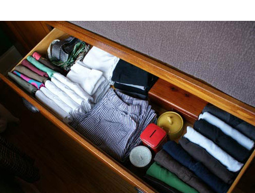 24.เปลี่ยนวิธีเก็บเสื้อผ้าในตู้เป็นแบบตะแคงแทนการวางซ้อนทับด้านบน