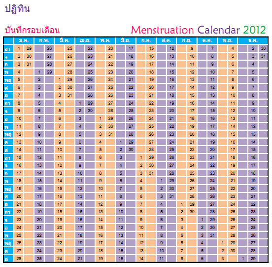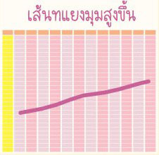 วันแรกของการมีประจำเดือนเรียงต่อกันเป็นเส้นทแยงมุมสูงขึ้นเรื่อยๆ แสดงว่า ประจำเดือนมีรอบระยะคงที่แบบสั้นกว่า 28 วัน ไม่สามารถใช้วิธีคุมกำเนิดแบบนับระยะปลอดภัยได้< |